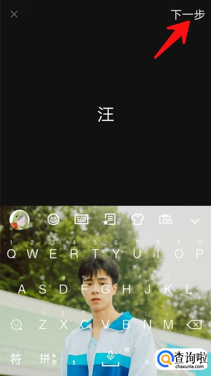 点击右下角的添加文字图标,随机选择一个姓氏,输入姓氏之后,根据个人的喜欢来调整姓氏的大小,调整好之后,点击下一步。