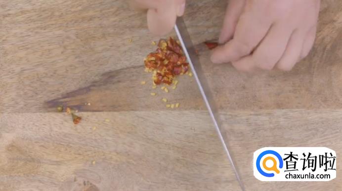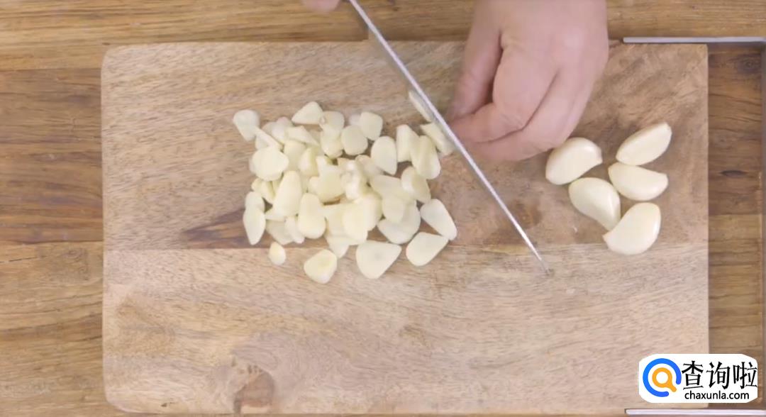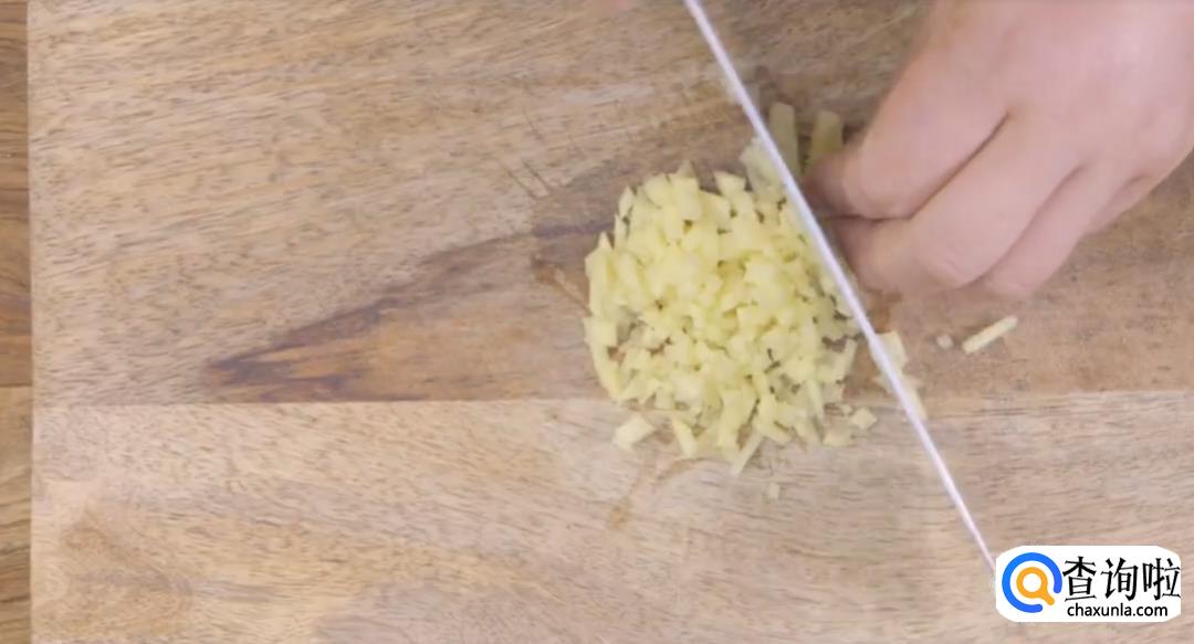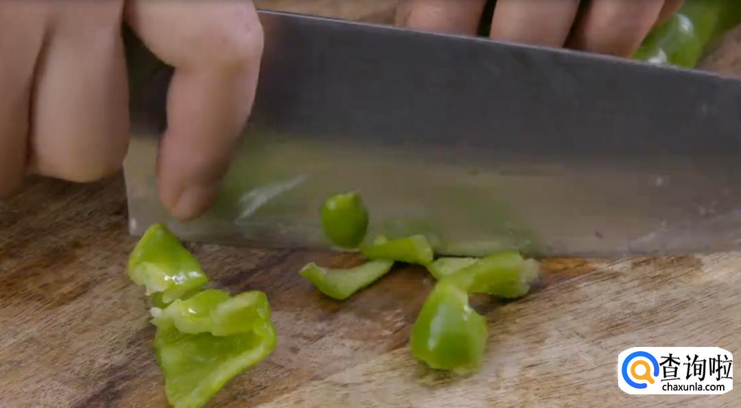 干辣椒切碎,生姜切碎,蒜切片,青椒切块。