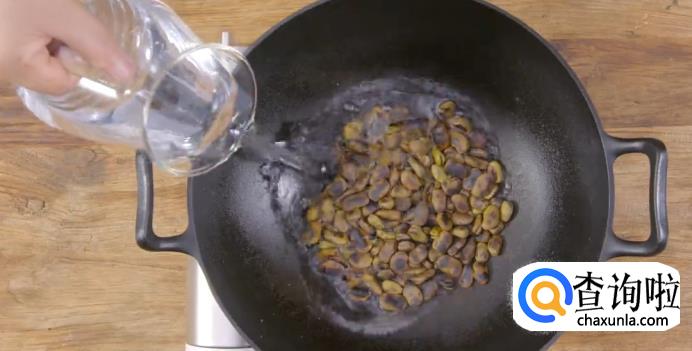 1、冷锅下蚕豆,受热比较均匀,整个过程用中小火炒。