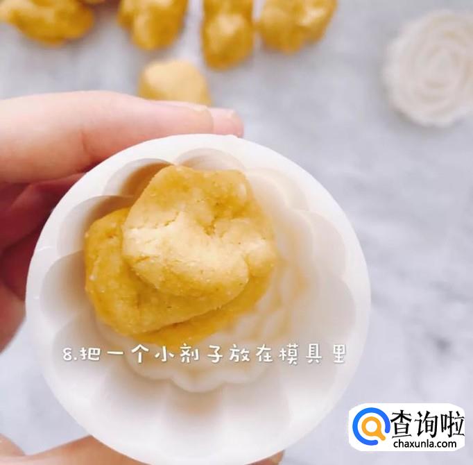 接着把小剂子放在模具里,如下图所示。