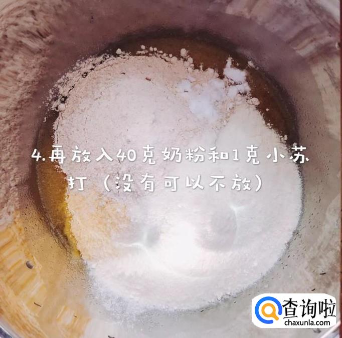 接着放入40克的奶粉和1克的小苏打,如下图所示。