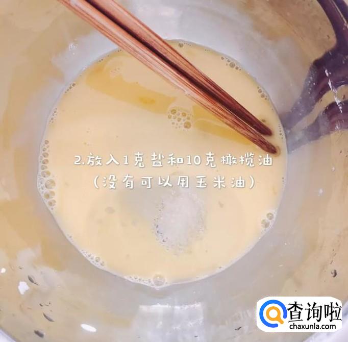 接着在碗内加入1克盐和10克的橄榄油,如下图所示。