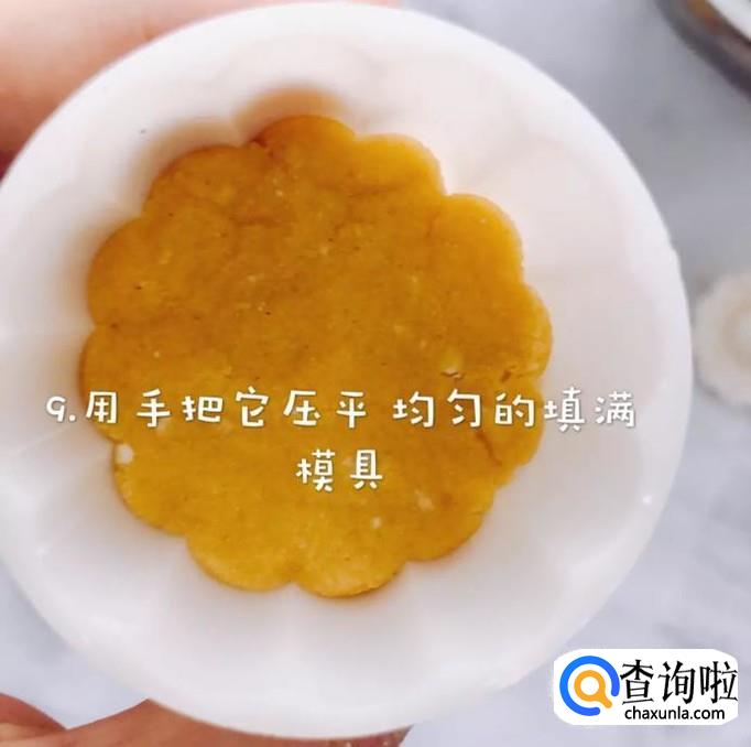 然后用手把它压平,均匀的填满模具,如下图所示。