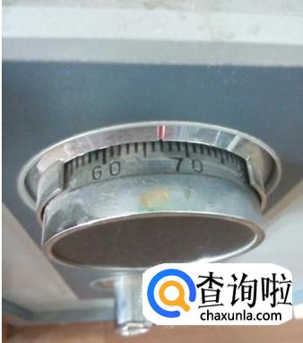 普通保险柜一般是机械密码的(如下图所示),有密码转盘,锁孔,把手,一般密码是三个数,此处示例保险柜的密码是50、35、17。