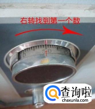 首先确定保险柜的密码盘的红点指在哪一个数字上,刚开始对应的数可以随意,如图,但要记住这个刻度,因为要计算圈数,对应这个刻度右转(顺时针旋转)两圈。