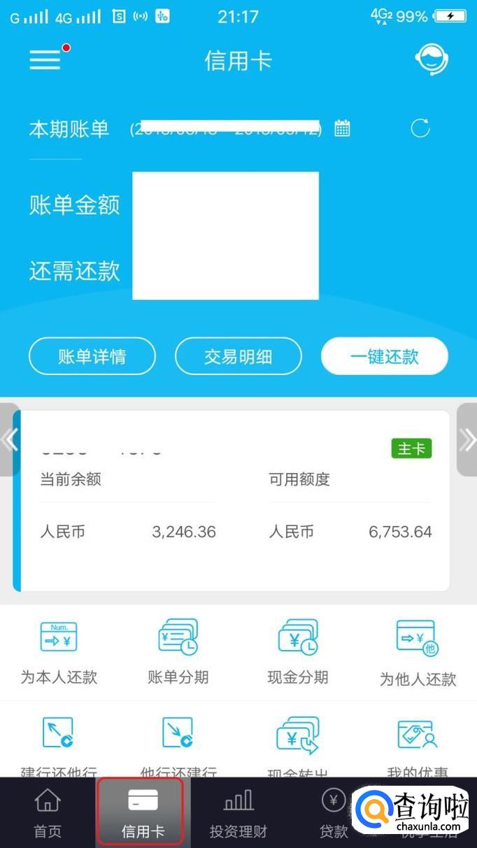登录完成之后,我们点击底部“信用卡”,进入个人信用卡界面。