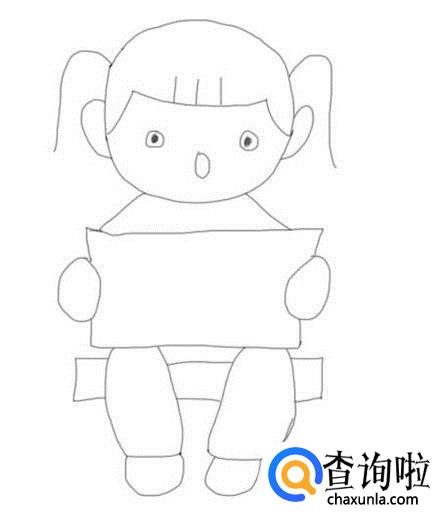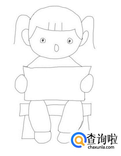 最后在凳面的下面画出凳子腿,这样读书的小女孩就画好了,如图所示: