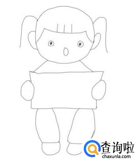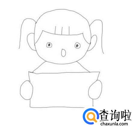 画好小女孩的头部之后,在头部下面画出小女孩的两只胳膊及手里的课本,如图所示: