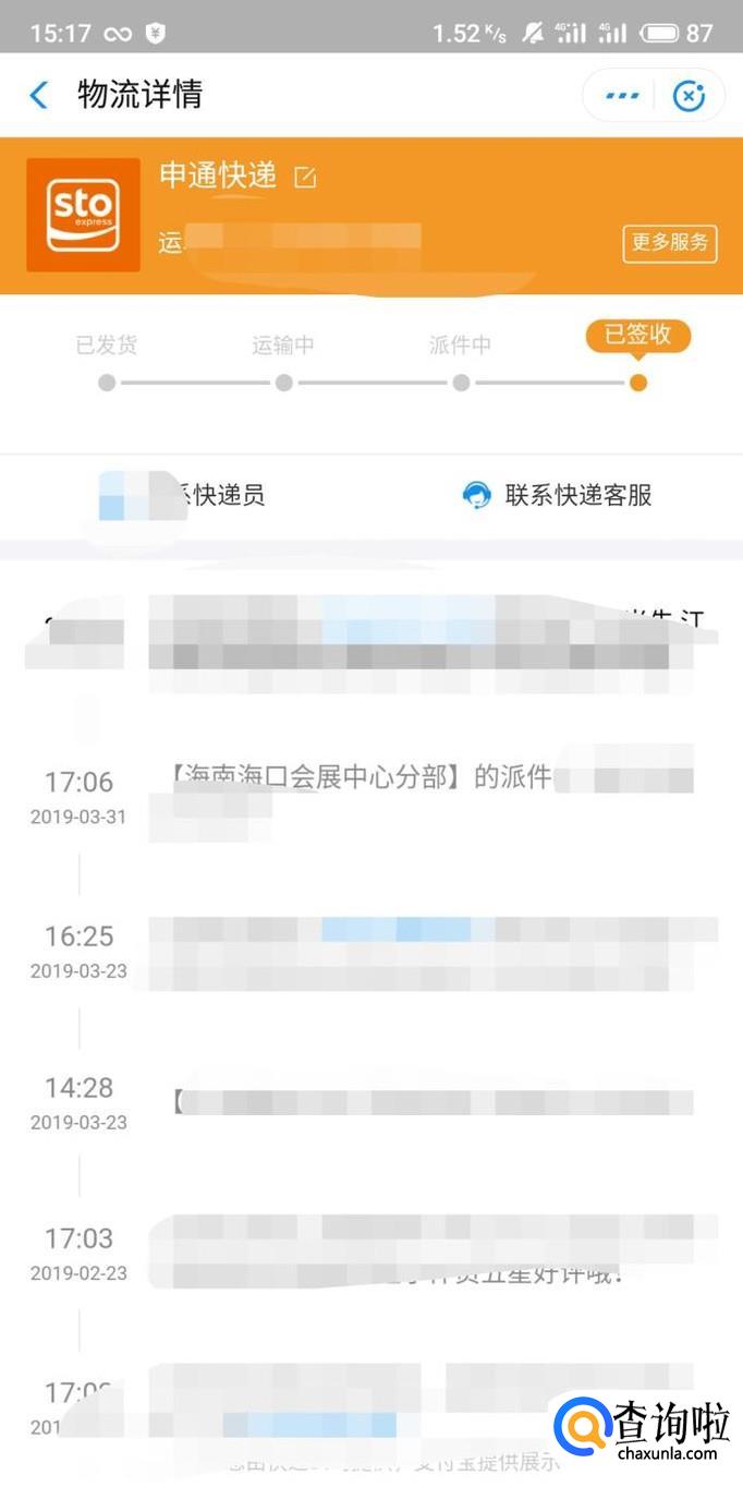 进去以后,即可看到快递运输的详情。