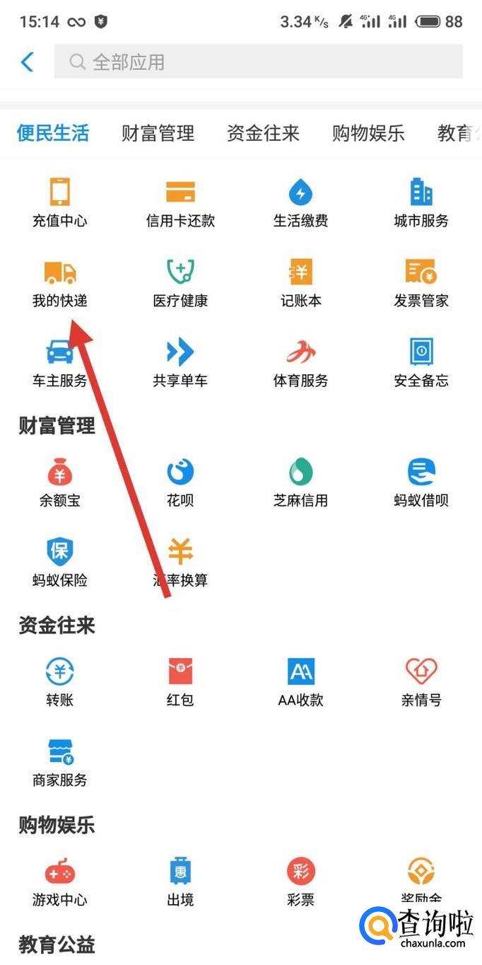 进入之后,点击“我的快递”,如图所示。