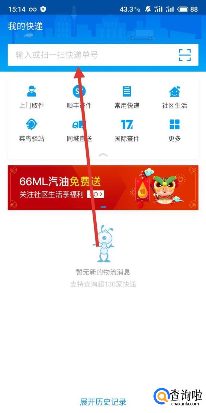 进去以后,点击图示位置输入申通的快递单号。