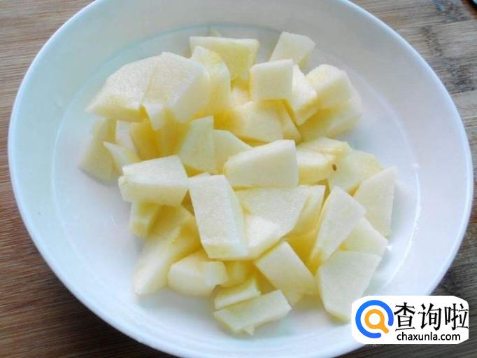 首先我们取适量的苹果,然后把表皮削去,然后切成薄片状备用