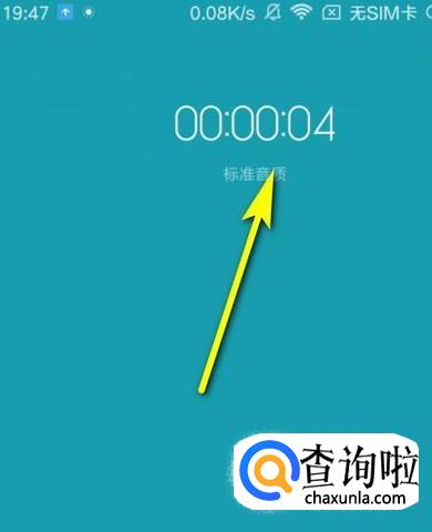 点击录音后,即进行录音,在屏幕上面显示录音时间。