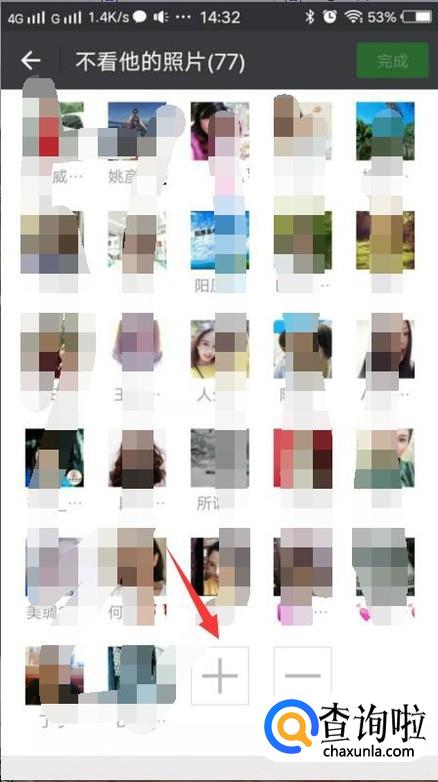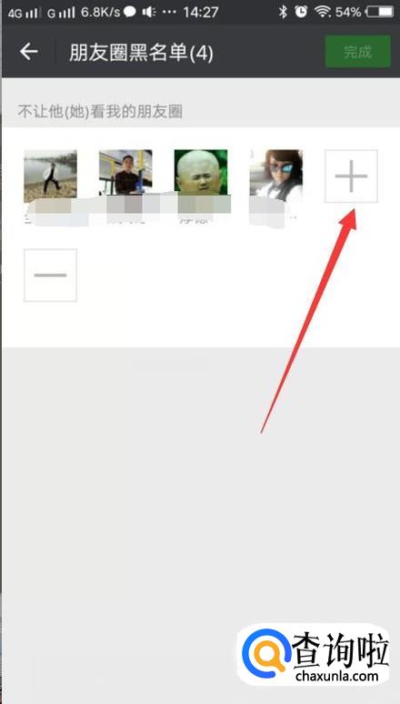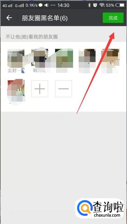 接着在页面下就可以看到限制的名单,点击右上角的完成保存下来。别人就无法查看自己朋友圈拉。