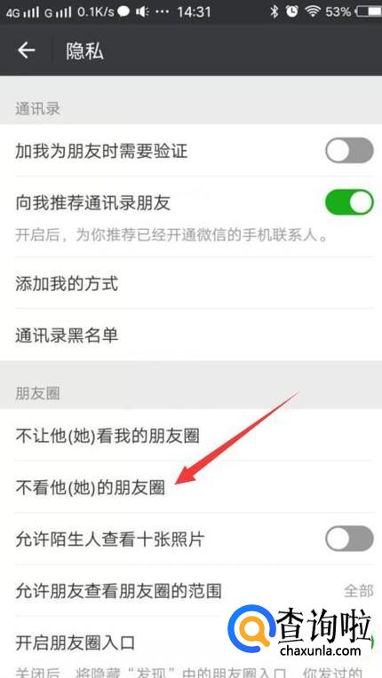 如果不想看到别人的朋友圈的话可以在下面设置点击“不看他的朋友圈”