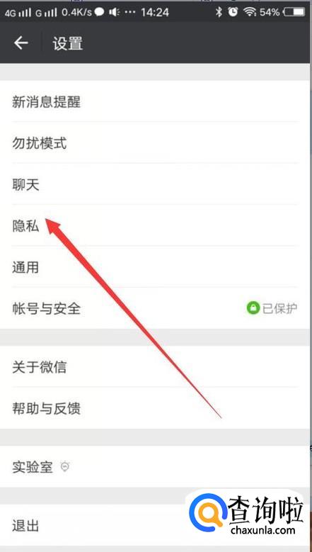 在设置选项点击下面的“隐私”,进入隐私设置页面。