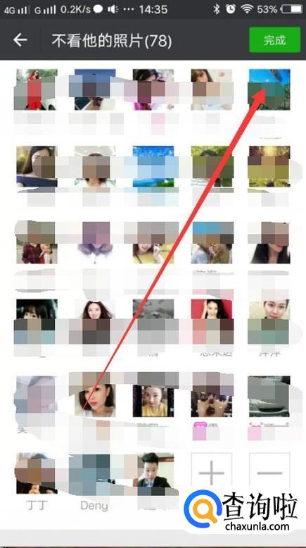 在页面就可以看到全部限制不看的朋友圈,点击右上角的完成保存下来就可以了!