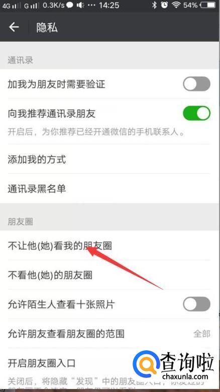 如果不想某些人查看自己朋友圈的话店家下面的“不让他看我的朋友圈”