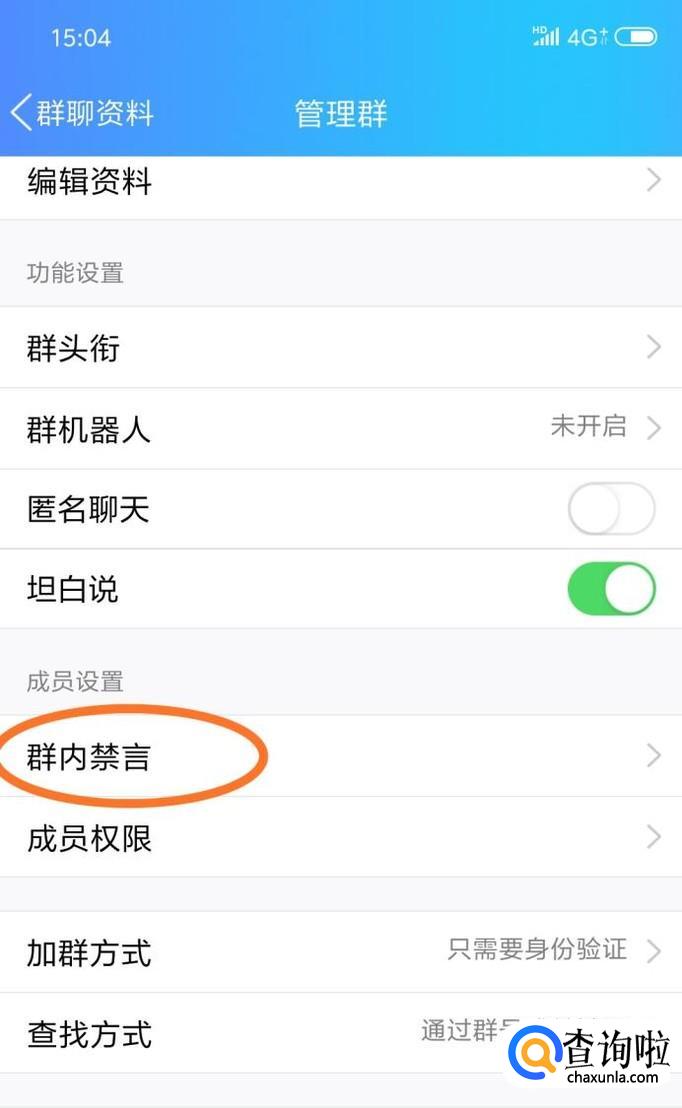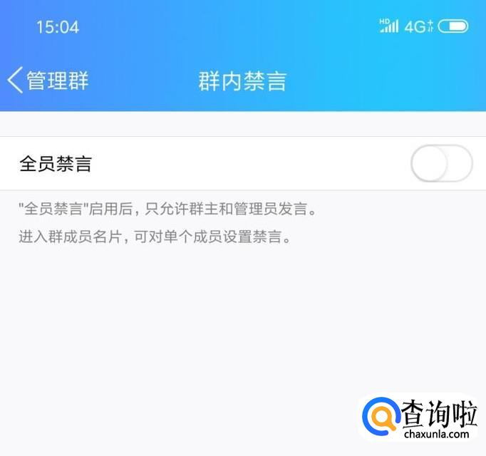 进去后,会出现“全员禁言”的选项,打开即可进行全员禁言的操作