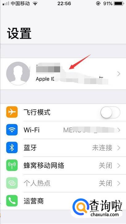 打开设置功能后第一个就是手机的id了,我们先点击进入。