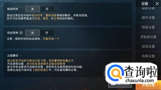我们在游戏对战的时候,可以点击界面右上角的设置按钮,也可以进入设置界面开启录屏功能