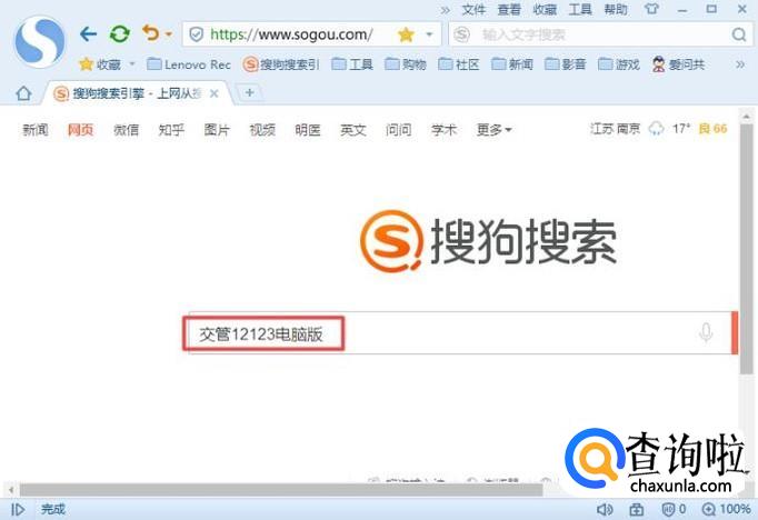 进入浏览器之后,我们在搜索引擎中输入交管12123电脑版,然后我们按回车键;