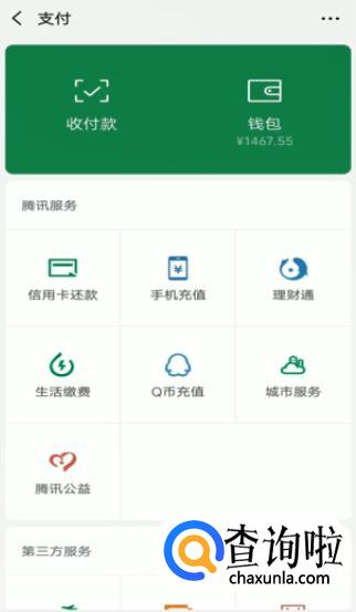 首先我们打开微信主页,点击右下角的我,再点击支付,再点击钱包。