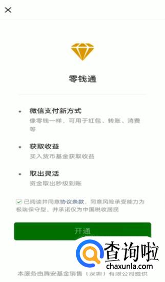 接着点击零钱通,在已阅读那小圆圈里面打勾。然后就再点击免费开通。