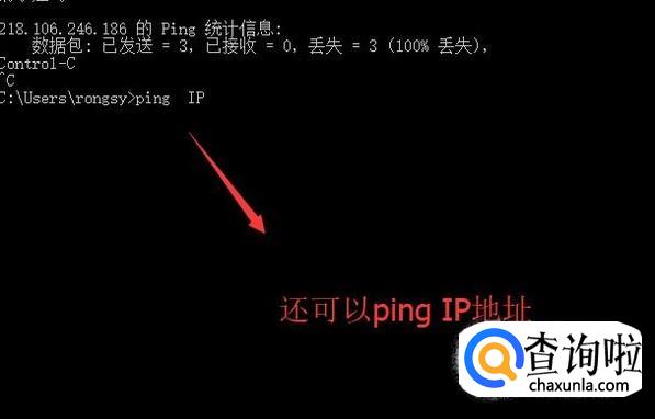 另外还可以在ping后面加IP地址来检测IP地址是否能连接成功,如下图所示