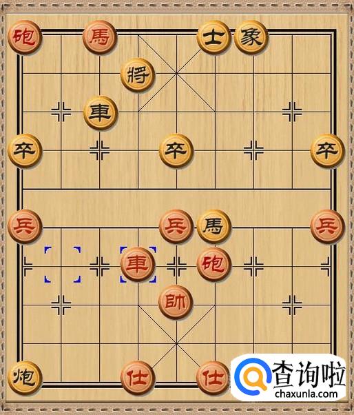 黑方车3退6,黑车退回来紧贴红方马,别住红方马的马腿,为黑方老将的移动自如保驾护航。如图所示。