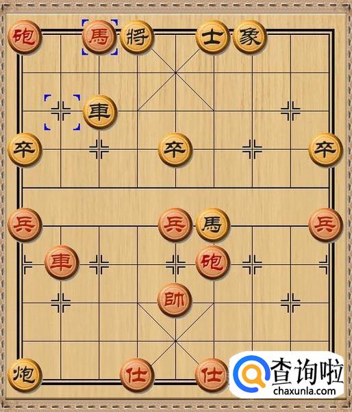 红方先行,由于黑方车看守着红方卧槽马这个点,所以红方马的移动位置受到限制。于是,红方马六进八,红方马避开黑方车的杀棋范围,跳到了有利位置。如图所示。