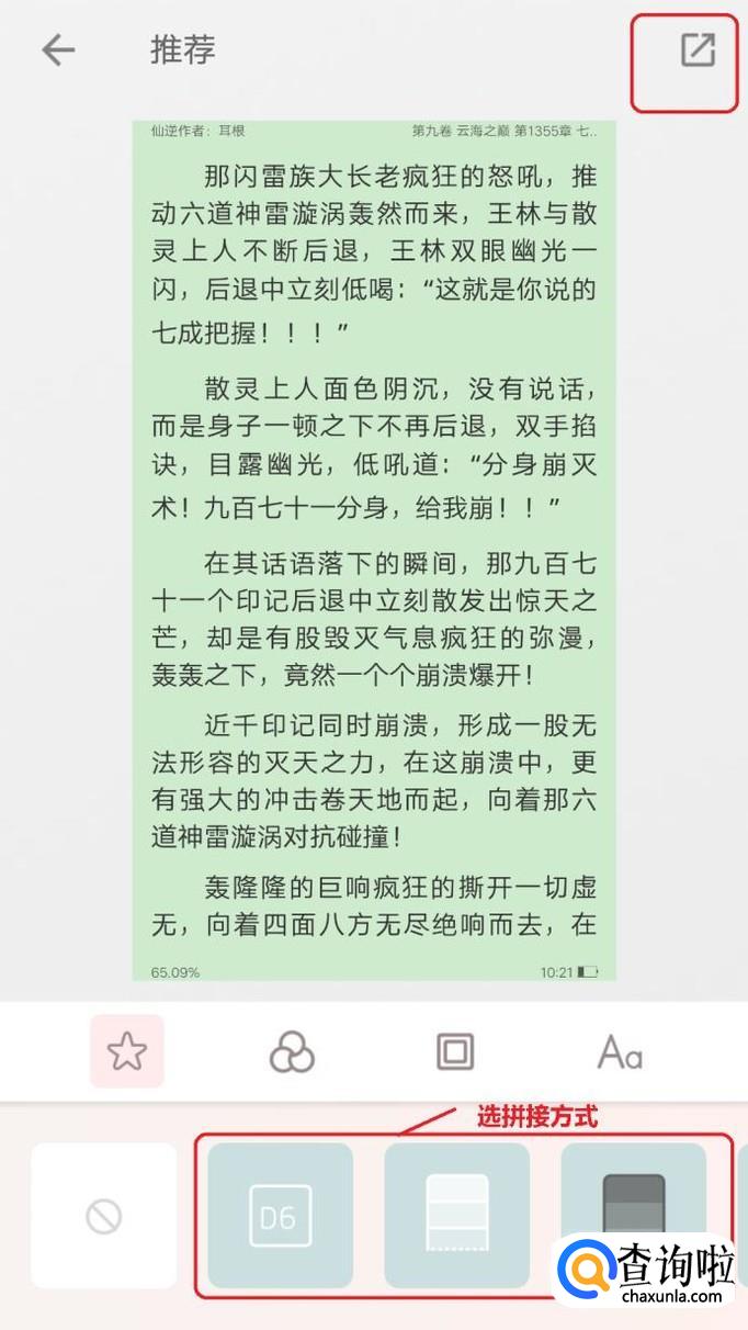 选一种拼接方式,默认是上下拼接,直接选默认即可,然后点击右上角图标,保存图片。