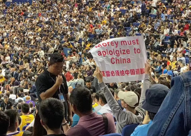 专指2019年10月10日上海某篮球馆内,入场支持NBA中国赛,而导致整个国家被外网群嘲的中国球迷。