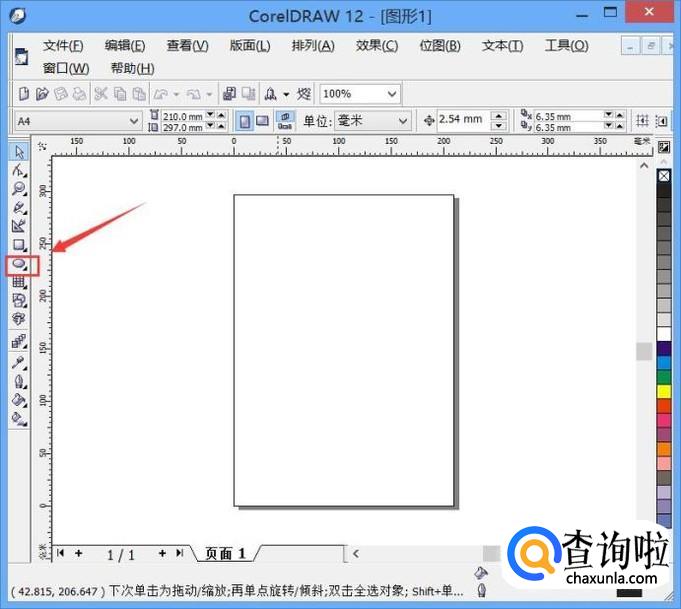打开cdr这款软件之后,然后在左侧的工具箱内找到椭圆形工具,如图所示:
