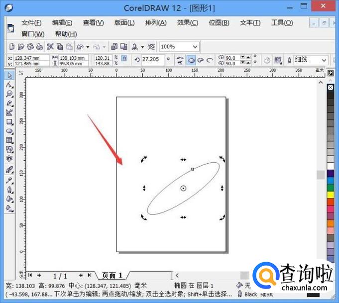 然后在选择刚刚绘制的图形,然后再将鼠标移动到上下左右中间位置,此时就可以对图形进行变形处理了,如图所示: