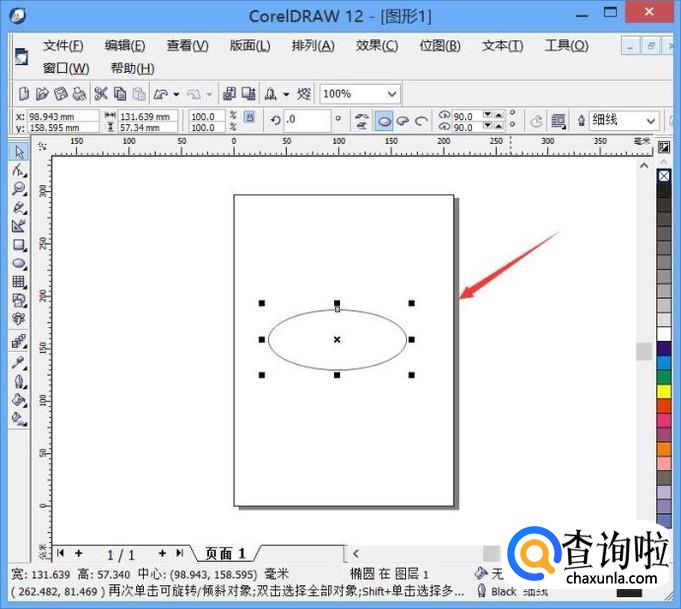 选择椭圆形工具,然后在工作区里绘制一个椭圆形,如图所示: