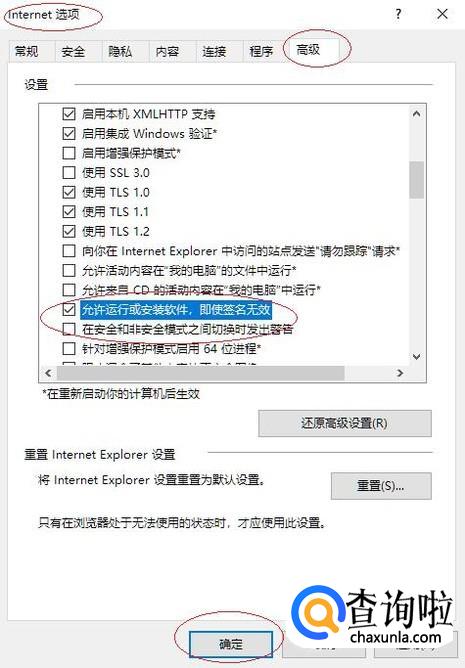如图所示,勾选"安全→允许运行或安装软件,即使签名无效"复选框。完成排除故障的操作,本例到此希望对大家能有所帮助。