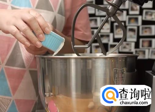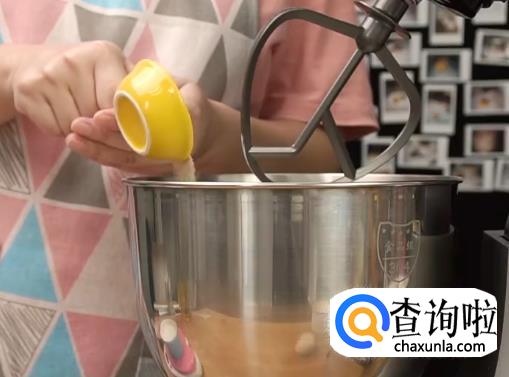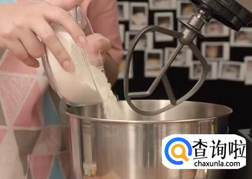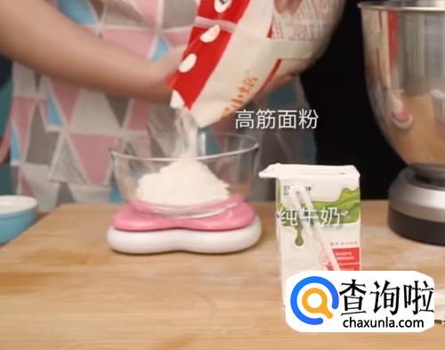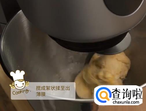 高筋面粉加鸡蛋,纯牛奶,玉米油,白砂糖,酵母和盐搅成絮状揉至出薄膜。