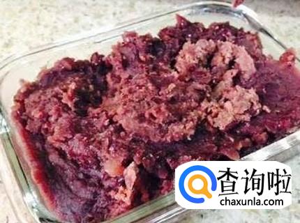 然后将煮好的红豆用料理机或者榨汁机打碎,如果没有料理机或者榨汁机也可以用纱布包裹好然后直接用擀面棍来压,只是相对来说更费力一些。