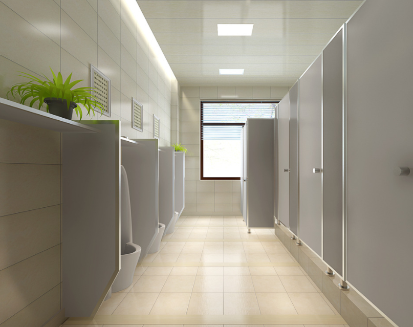 2)间隔的墙板留的空间,可以避免冲水的时候,厕位里的水溅到墙角避免因此产生的细菌。