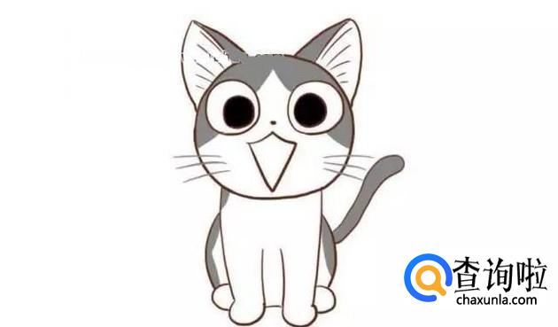 黑色的小圆是猫咪的眼睛,将猫咪的鼻子用一个小点来画出来,嘴巴是菱形的,想要表现出猫咪的毛茸茸,在耳朵里轻轻地柔和地画上几笔,Q萌的感觉就出来啦。
