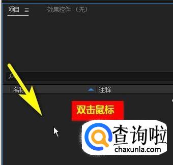 在AE界面的左上方这里,展开项目面板,在项目面板下半部分这里,双击鼠标。