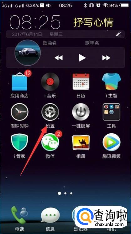 手机要连接车载导航上面的百度CarLife必须要打开USB调试模式。点击手机桌面的设置选项。