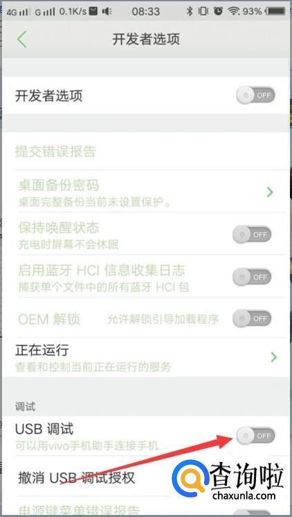 打开之后在下面USB调试的右侧开关处打开模式开关。