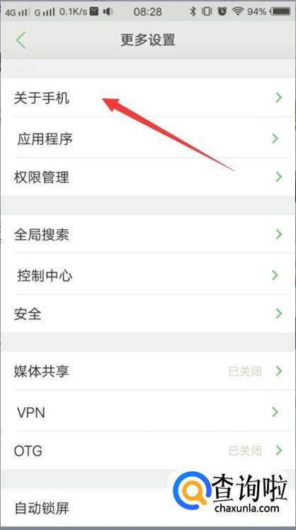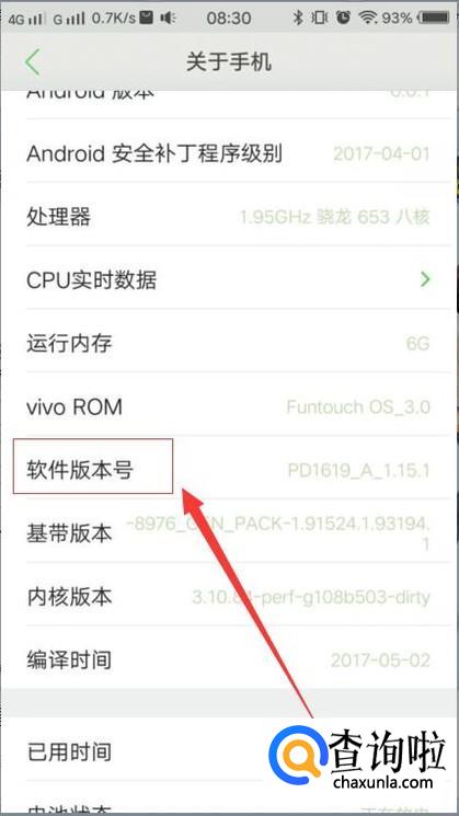 在手机页面找到“软件版本号”,然后用手指点击四次,每点击一次就会提示还剩下几部。用来打开开发者选项。