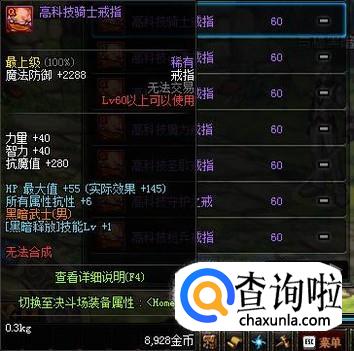 戒指方面自然还是选择“高科技骑士戒指”,【黑暗释放】技能LV+1。