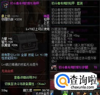上衣部位可以选择70级神器初斗者专用系列上衣,对所有职业30级技能的技能等级都有着1级的加成。