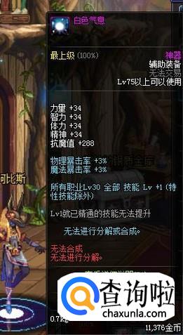 左槽首选怀表或天界军衔,但由于这两样的获取较为“看脸”,所以这里我们可以选择75级神器左槽“白色气息”,所有职业LV30全部技能LV+1(特性技能除外)。