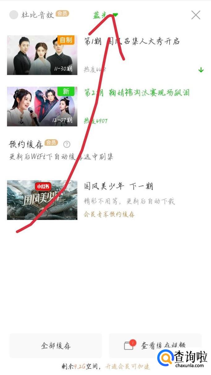 点点击最上方的“箭头”,如图1箭头所示。会出现一个新的界面,选择“蓝光”选项,如图2箭头所示。