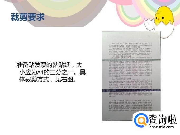 准备好贴发票的黏贴纸,大小为A4纸的1/3。